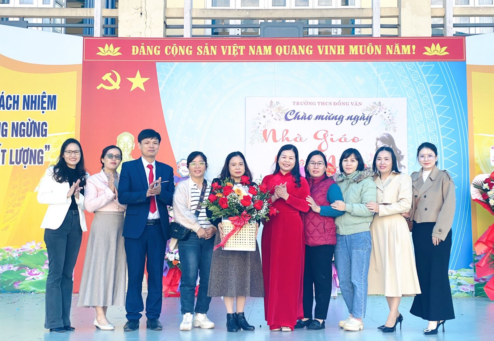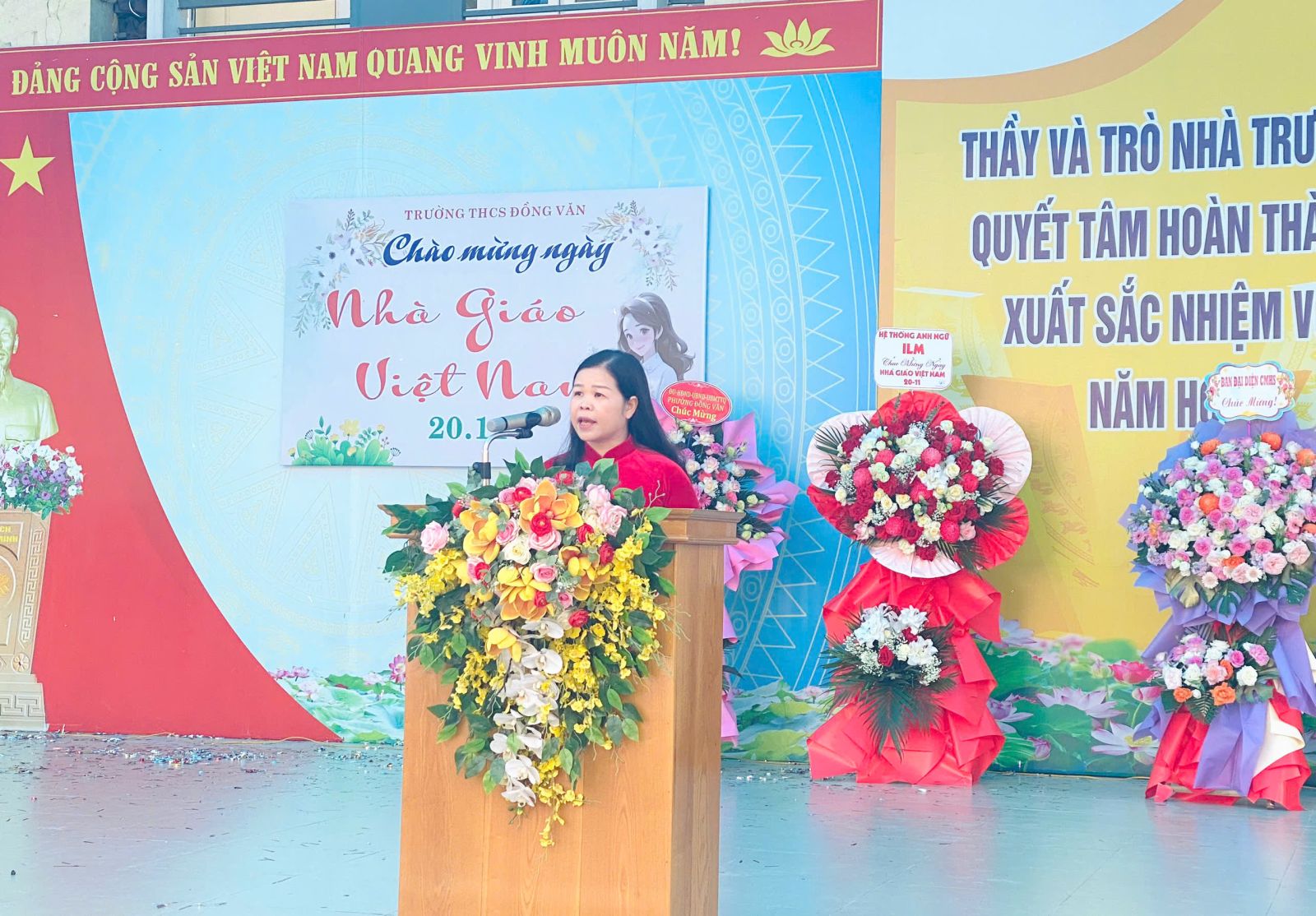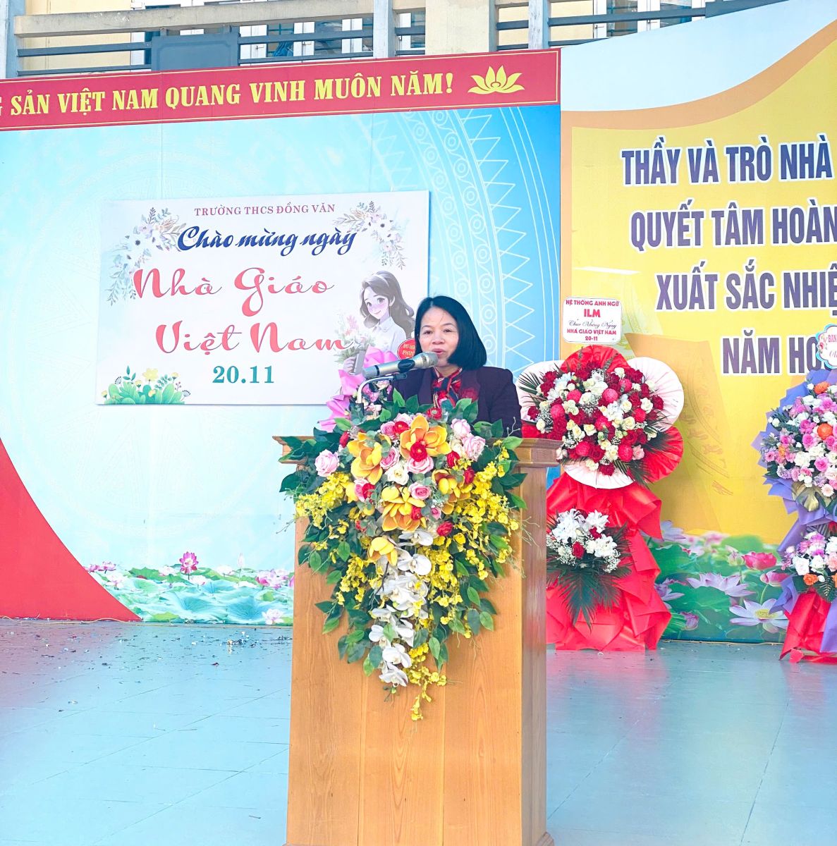 Tháng 11 lại về, mang theo những cơn gió se lạnh, mang theo cả những xúc cảm thân thương khó tả. Tháng 11 – tháng của tri ân, của lòng biết ơn và của những điều đẹp nhất gửi đến những người đã chọn nghề gieo chữ, trồng người. Hôm nay, trong không khí trang trọng nhưng đầy ấm áp, trường THCS Đồng Văn long trọng tổ chức Hội nghị kỷ niệm 43 năm Ngày Nhà giáo Việt Nam – một ngày thật đặc biệt để mỗi chúng ta cùng nhìn lại, để biết ơn và để trân trọng những tấm lòng đã tận tụy suốt bao năm tháng.” Về dự với Hội nghị có sự hiện diện của các vị đại biểu, bà Chu Thị Hồng – TVĐU, phó chủ tịch HĐND phường, cùng các ông, bà đại diện Đảng ủy, HĐND, UBND phường Đồng Văn, các vị đại biểu đại diện ban đại diện cha mẹ học sinh, cùng toàn thể thầy, cô giáo và các em học của nhà trường.