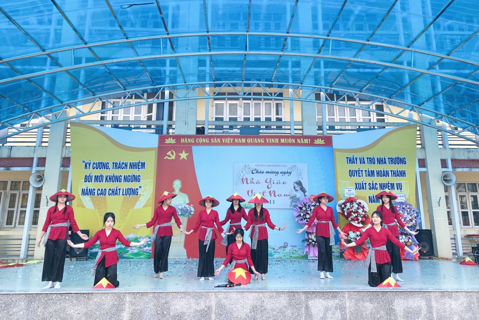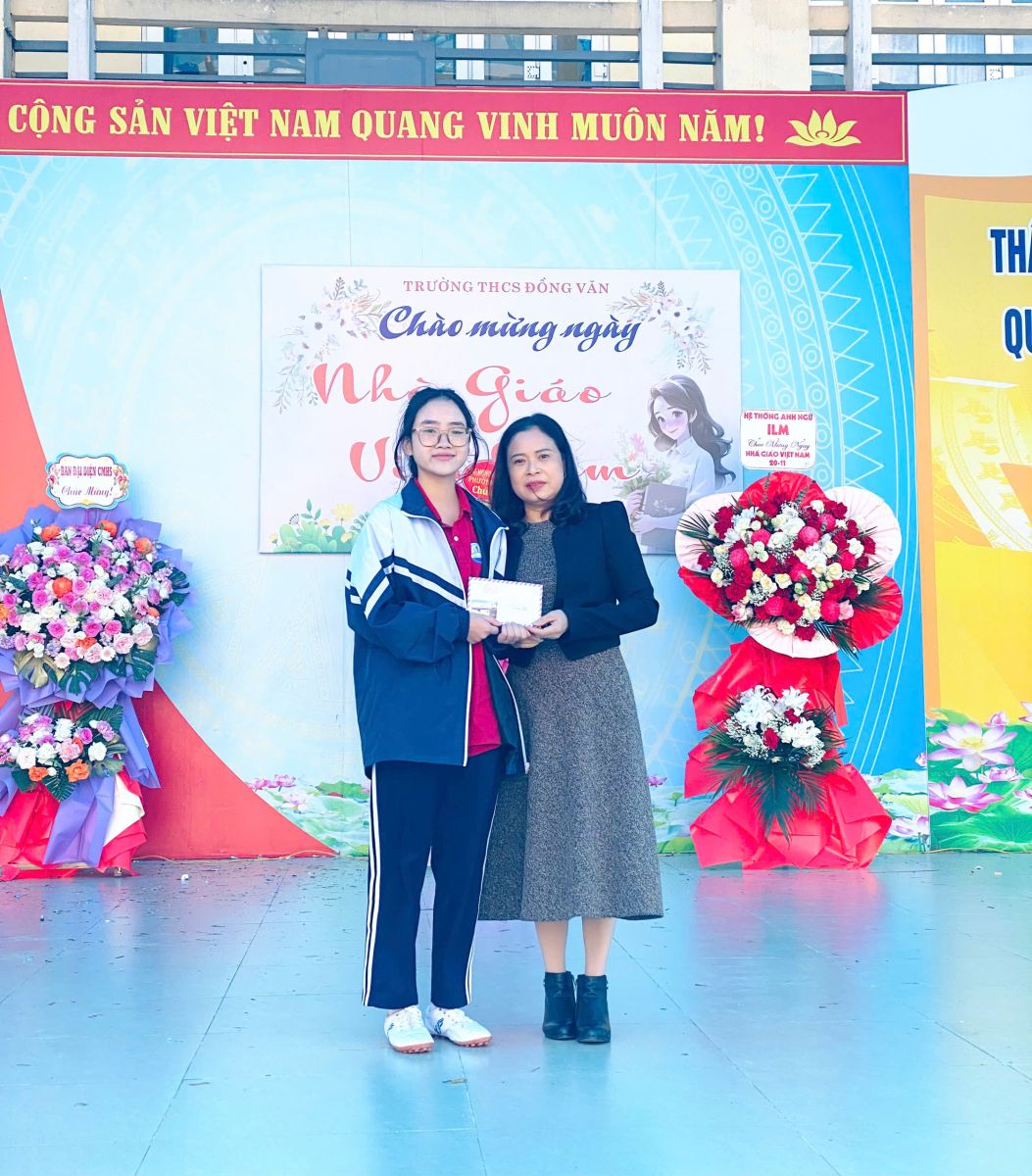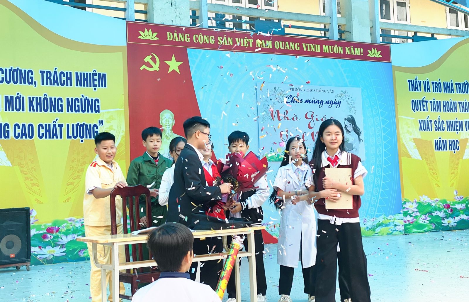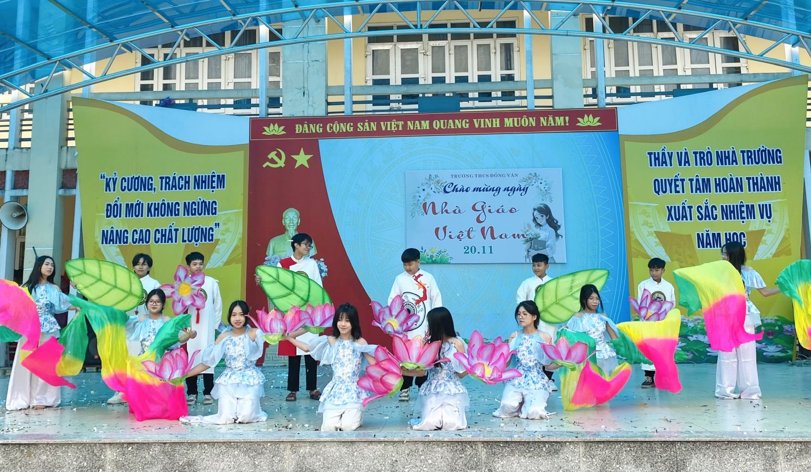 Tháng 11 lại về, mang theo những cơn gió se lạnh, mang theo cả những xúc cảm thân thương khó tả. Tháng 11 – tháng của tri ân, của lòng biết ơn và của những điều đẹp nhất gửi đến những người đã chọn nghề gieo chữ, trồng người. Hôm nay, trong không khí trang trọng nhưng đầy ấm áp, trường THCS Đồng Văn long trọng tổ chức Hội nghị kỷ niệm 43 năm Ngày Nhà giáo Việt Nam – một ngày thật đặc biệt để mỗi chúng ta cùng nhìn lại, để biết ơn và để trân trọng những tấm lòng đã tận tụy suốt bao năm tháng.” Về dự với Hội nghị có sự hiện diện của các vị đại biểu, bà Chu Thị Hồng – TVĐU, phó chủ tịch HĐND phường, cùng các ông, bà đại diện Đảng ủy, HĐND, UBND phường Đồng Văn, các vị đại biểu đại diện ban đại diện cha mẹ học sinh, cùng toàn thể thầy, cô giáo và các em học của nhà trường.