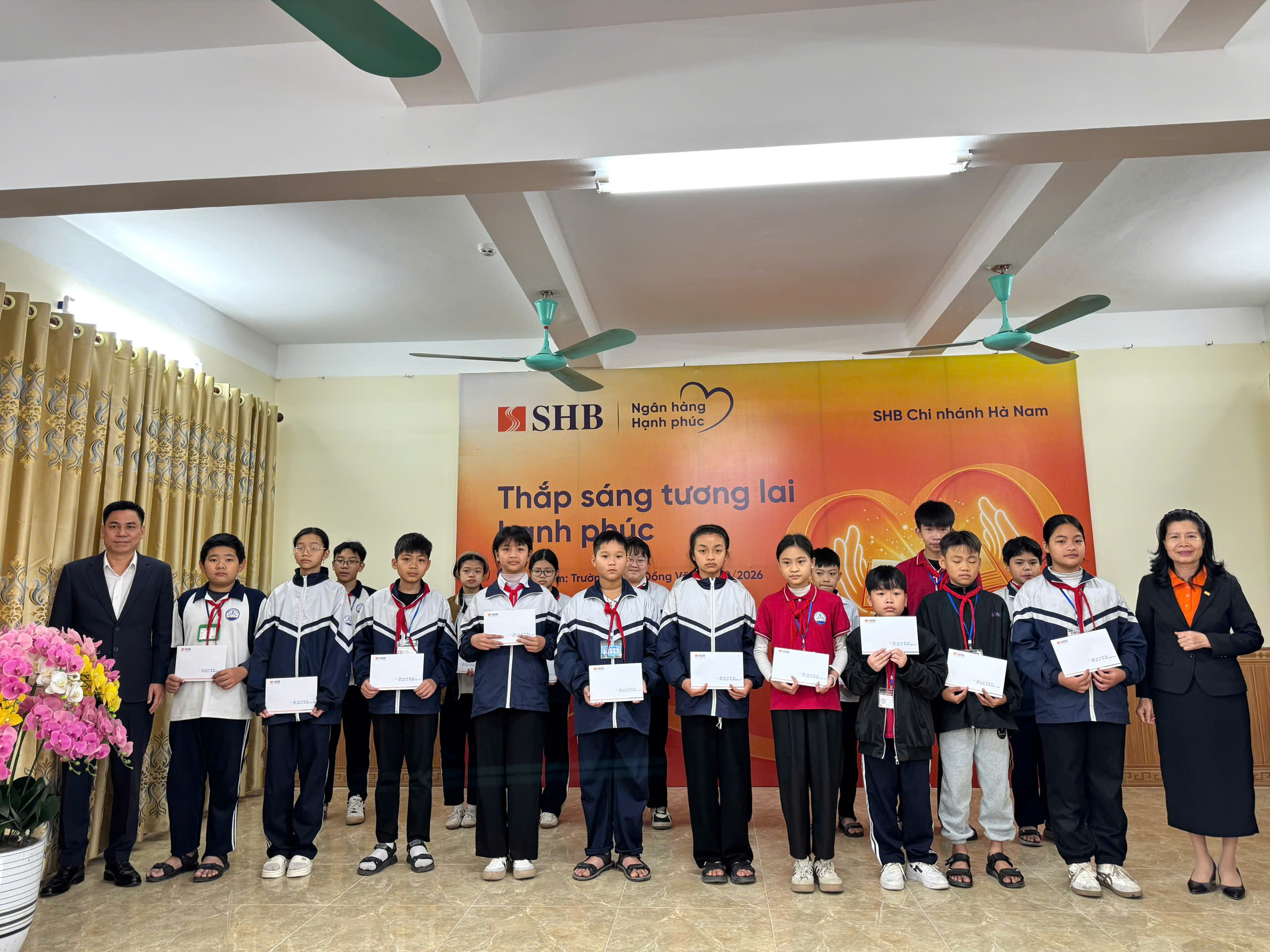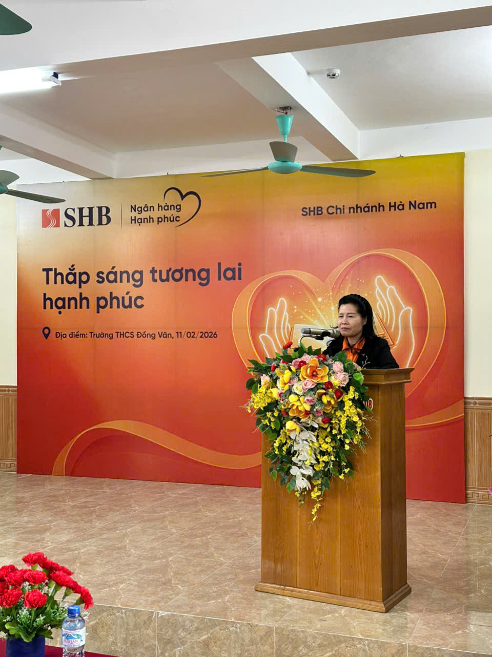 Sáng ngày 11/02/2026, thày và trò Trường THCS Đồng Văn vinh dự được đón đoàn Lãnh đạo, cán bộ, nhân viên Ngân hàng Thương mại cổ phần Sài Gòn – Hà Nội (SHB) chi nhánh Hà Nam về thăm và tổ chức chương trình “Thắp sáng tương lai hạnh phúc”.