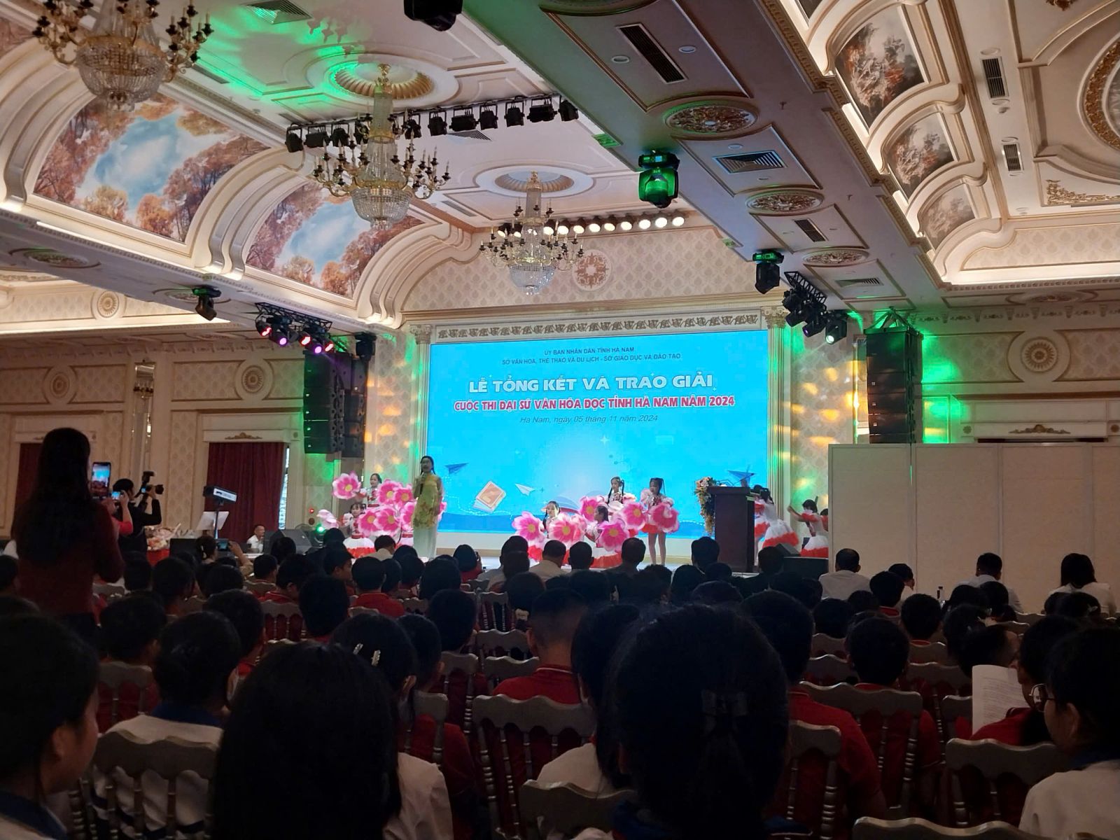 Chiều ngày 5/11, Sở Văn hóa, Thể thao và Du lịch phối hợp với Sở Giáo dục và Đào tạo tổ chức tổng kết và trao giải cuộc thi Đại sứ Văn hóa đọc tỉnh Hà Nam năm 2024. Tới dự có đồng chí Nguyễn Đức Vượng, Tỉnh ủy viên, Phó Chủ tịch UBND tỉnh. Chương trình được tổ chức trang trọng, đánh dấu sự nỗ lực và thành công của các thí sinh trong việc lan tỏa tinh thần yêu sách và văn hóa đọc. Cuộc thi này là sân chơi trí tuệ nhằm khuyến khích và phát huy tinh thần yêu sách, đam mê học hỏi và phát triển văn hóa đọc trong giới trẻ.