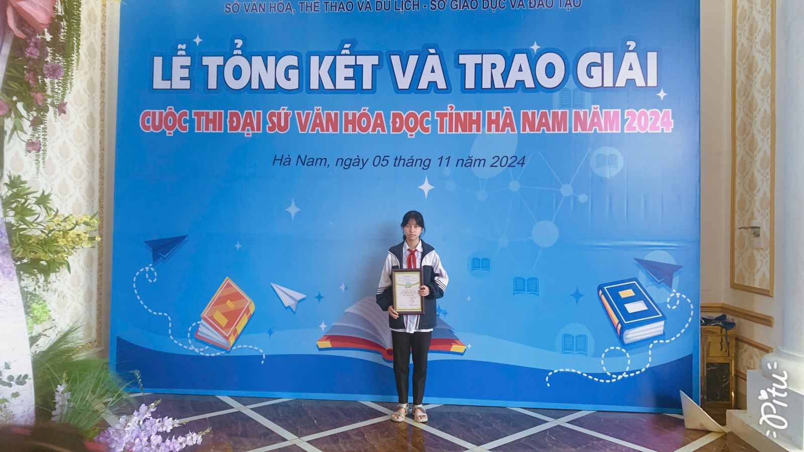 Rất vinh dự cho trường THCS phường Đồng Văn có em Nguyễn Tuệ Anh, học sinh lớp 8C đã xuất sắc đạt giải Khuyến khích đem về niềm vinh dự cho nhà trường và bản thân. Đây là một thành tích đáng khích lệ, góp phần lan tỏa tinh thần ham đọc sách và học tập của học sinh, năm 2024 đã có 75.252 thí sinh của 232 trường học trên địa bàn tỉnh tham gia cuộc thi từ cấp cơ sở và được lựa chọn được hơn 800 gửi về ban tổ chức dự thi cấp tỉnh. Ban tổ chức đã lựa chọn 5 tập thể và 107 cá nhân để trao giải